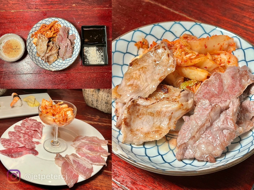 日式烤牛肉+味噌烤松阪豬肉,肉汁豐富搭配韓式泡菜,沾上特製醬料,口中滿滿肉汁超幸福。小林英夫提供免費豆腐味噌湯、冰涼烏龍茶,加入會員生日還有好康7選1~