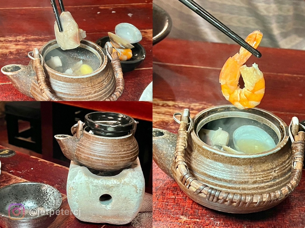 另一個省錢王必推的加點,就是百元的土瓶蒸,顧名思義料真的多多,完全不手軟,蝦子、蛤蜊、魚肉、雞肉通通放好放滿~