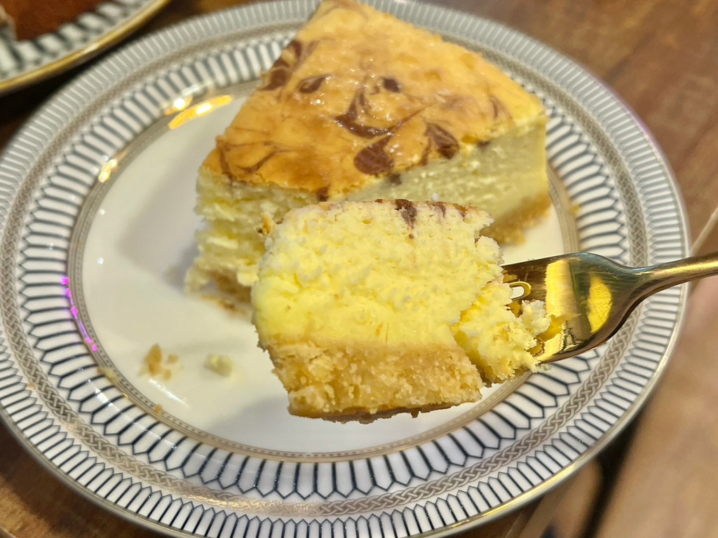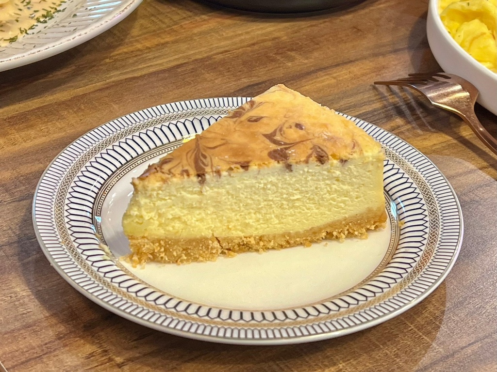 大理石蛋糕鹹鹹甜甜,起司香味相當濃郁,底下有層酥脆的餅乾,一入口起司濃厚的滋味湧上鼻腔~這款鹹中帶甜的美味甜點,用料真的頗實在!