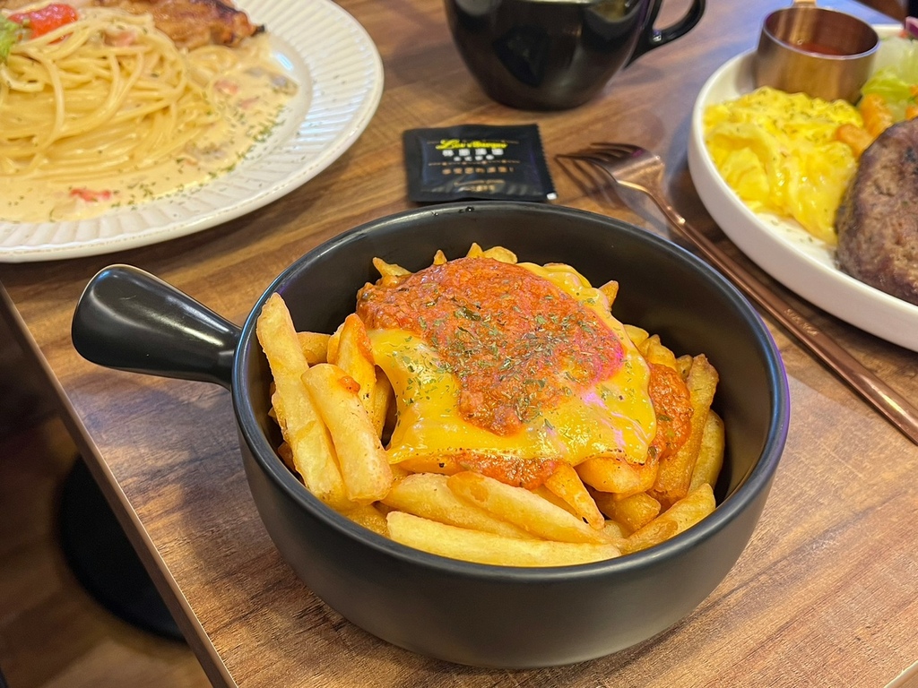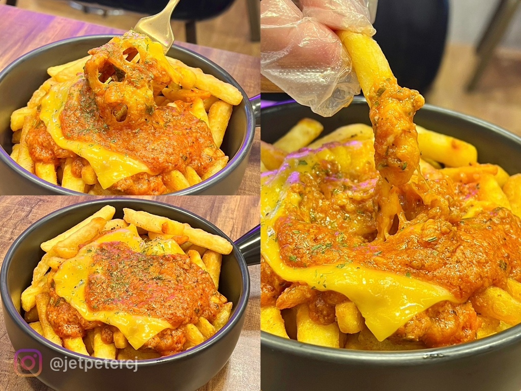 薯條加上特製的肉醬跟起司,表面變得濕潤帶點起司濃郁的口感,薯條香噴噴帶點酥脆,