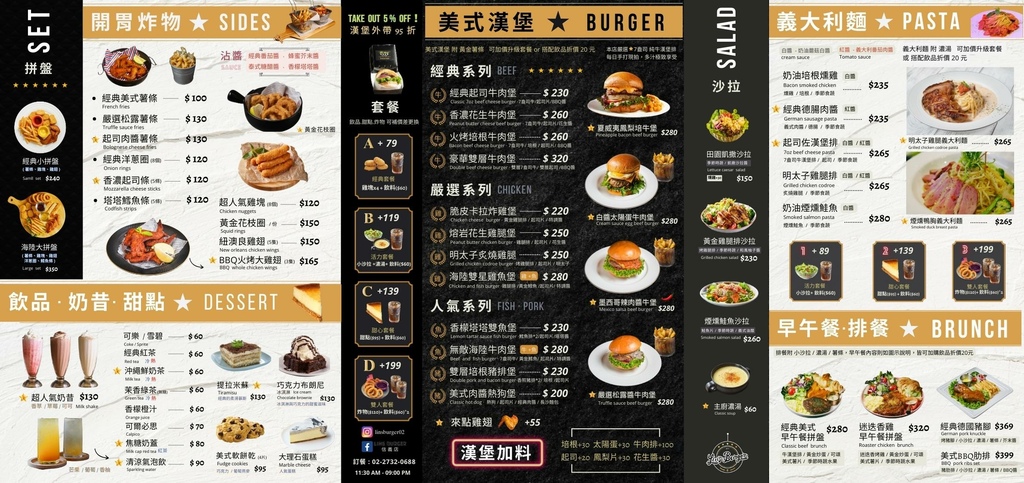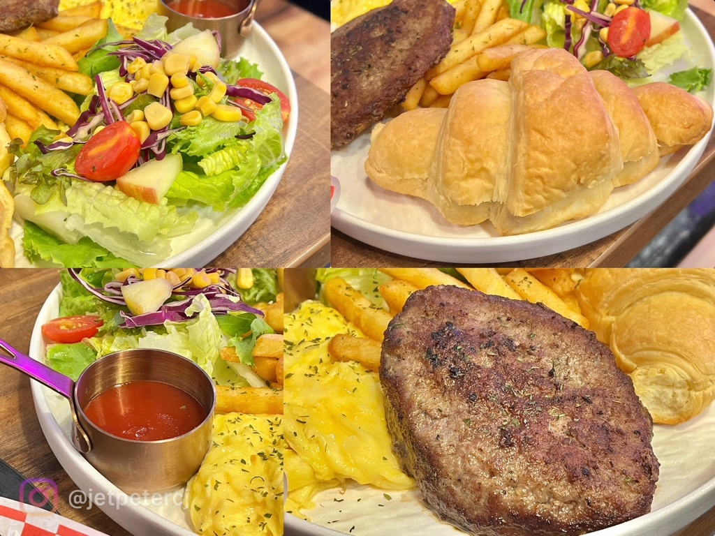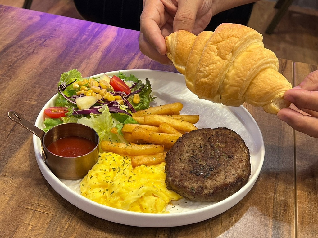 黃金炒蛋/可頌/美式薯條/季節沙拉/牛漢堡排