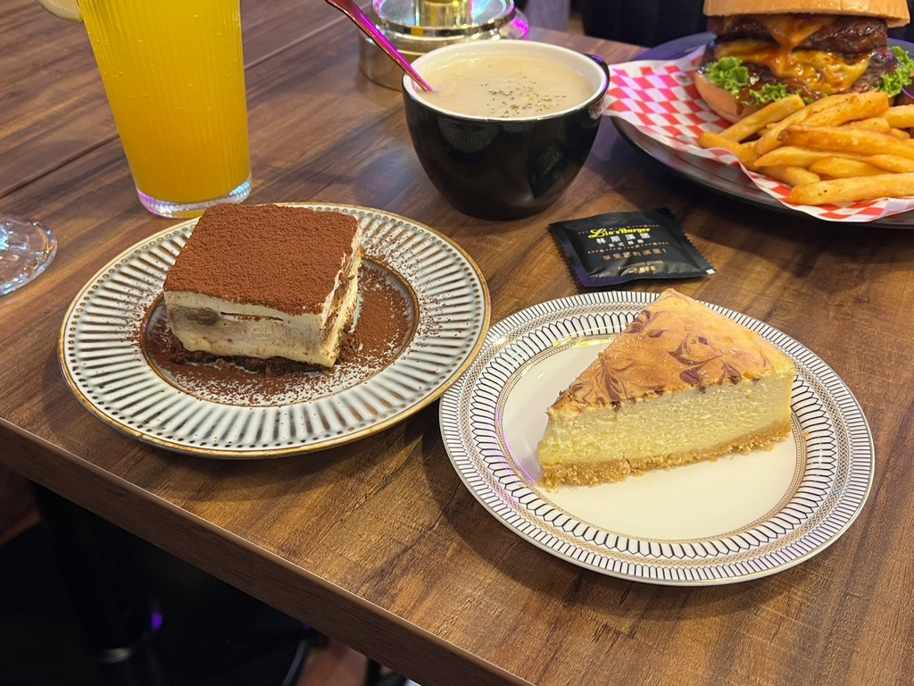 不只主餐好吃,甜點、飲品也相當出色,甜而不膩的可可奶昔、爽口清涼芒果氣泡飲、帶點滑順慕斯口感的提拉米蘇、非常漂亮的人氣大理石蛋糕,來林斯漢堡吃下午茶也挺適合~