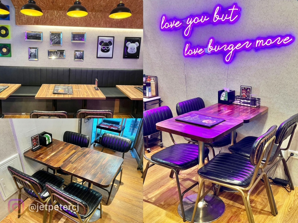 店內裝潢相當吸引人,紫色霓虹燈寫著「 LOVE YOU BUT ★ LOVE BURGER MORE 」~展現出一個漢堡控的熱愛!