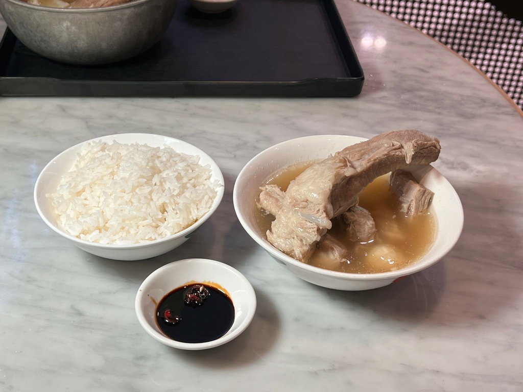 松發肉骨茶湯頭真的一級棒,香辣過癮,喝起來自然回甘,而且可以免費加湯喝到爽~招牌龍骨超大一根,肉質軟嫩,啃骨頭吸收湯頭滿滿的精華