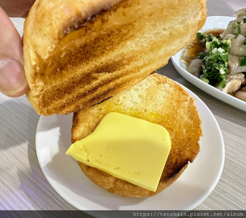 「彌敦道港式茶餐廳」的"鮮油菠蘿包"烤特特別酥脆,不只烤外表,連切面也烤得焦黃,搭配鹹香柔滑的奶油,每一口都是人間美味,令人難忘!