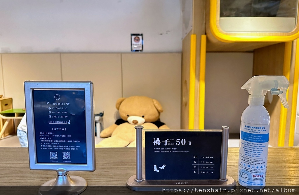 不過,遊戲區的衛生不是餐廳單方面的責任,每個使用者都有義務共同維護,穿著襪子、使用"黃金盾"消毒雙手再進入,就是需要遵守的基本禮貌。若是您忘了穿襪子,這裡也提供襪子的販售,設想面面俱到。