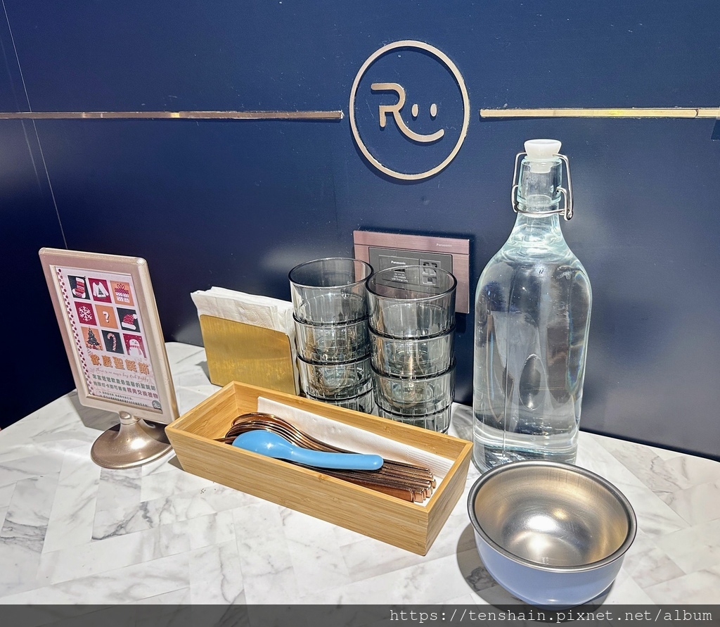 大理石櫃台突顯貴氣,不過這不是重點,因為帶小寶貝一起來的餐廳,最重要的當然是攸關健康的衛生問題。進餐廳之前要先消毒雙手,這已經快被大家遺忘的好習慣,沒想到「富爸爸餐飲會所」還在認真執行!小朋友的抵抗力比大人低,做為一個親子餐廳,用更嚴格的標準來要求衛生,是絕對必要的。看到櫃台前面這張"本場所使用黃金盾"的貼紙,帶小孩同來的爸媽,應該會覺得更安心吧!