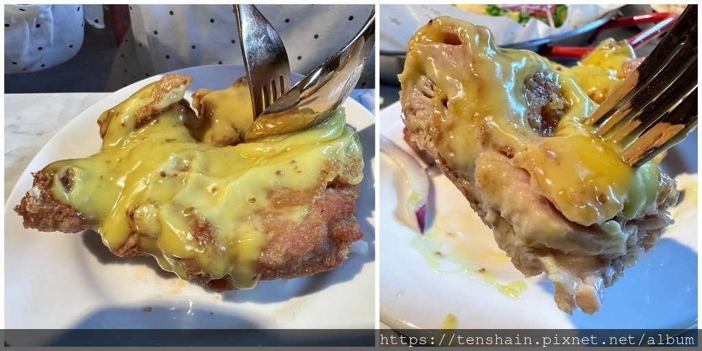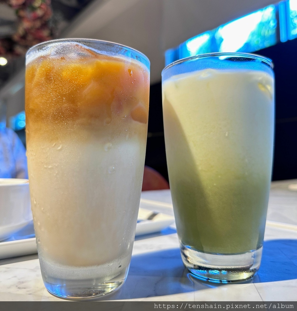 吃炸物口水容易乾,這時候冰涼的冷飲最適配。"抹茶歐蕾"一杯 140 元,白綠漸層的顏質很吸睛,有抹茶的香氣和牛奶的溫潤奶香,卻沒有抹茶常有的苦澀,老婆超愛。用吸管慢慢攪拌,隨著混合程度的不同,可以品嘗到濃淡不同的抹茶風味。一杯飲料,有多種風情,難怪連平常不愛抹茶的我,也偷喝了好幾口。