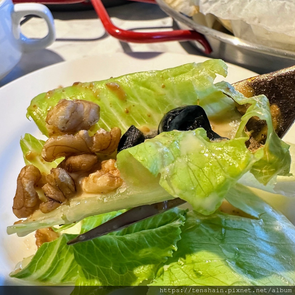 老婆超愛這道沙拉,直誇胡麻醬看起來不多,吃起來卻味道十足。其實生菜沙拉好不好吃,重點一是蔬菜夠不夠新鮮?這道沙拉的蔬菜,吃起來就像剛採摘下來的一樣,又脆又甜,水分十足。重點二是醬汁夠不夠清爽?畢竟吃沙拉,圖的就是健康,如果醬汁太濃稠,就失去吃沙拉的意義。但是,要清爽又要夠味道,這就很考驗廚師的功力,不是我們一般人想的那麼簡單。這道沙拉之所以厲害,就是在清爽和夠味道之間取得最好的平衡,值得一試。