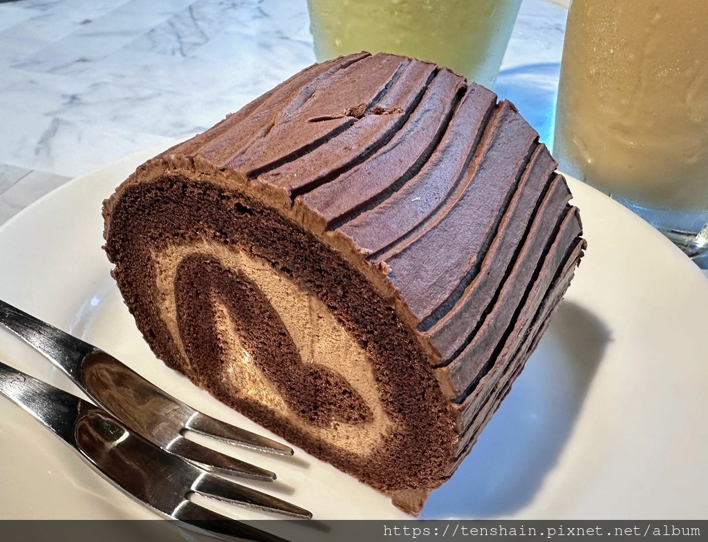 SET B 套餐包含蛋糕,但是這裡的蛋糕種類似乎不是固定,當天有"巧克力蛋糕、草莓慕絲蛋糕、蒙布朗蛋糕"三種選擇,我們家人都是巧克力控,當然二話不說選"巧克力蛋糕"。這塊巧克力蛋糕很可以,略帶苦味的蛋糕體,中和較甜的的慕絲,整體吃起來甜度恰到好處,吃多了也不會覺得有負擔。