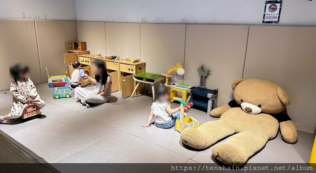 衛生做好了,安全也很重要。全木構遊樂器材邊緣都做了磨圓處理,可能撞到的邊邊角角都有防撞膠條,牆壁、地板的防護軟墊,更是鋪得嚴嚴實實。不僅如此,平日晚上、假日全天,還有三位幼保科專業姐姐輪班陪玩,FB 上有班表可查。安全防護做到這個程度,真的是令我嘆為觀止!