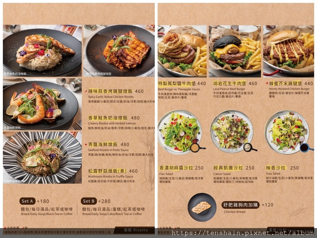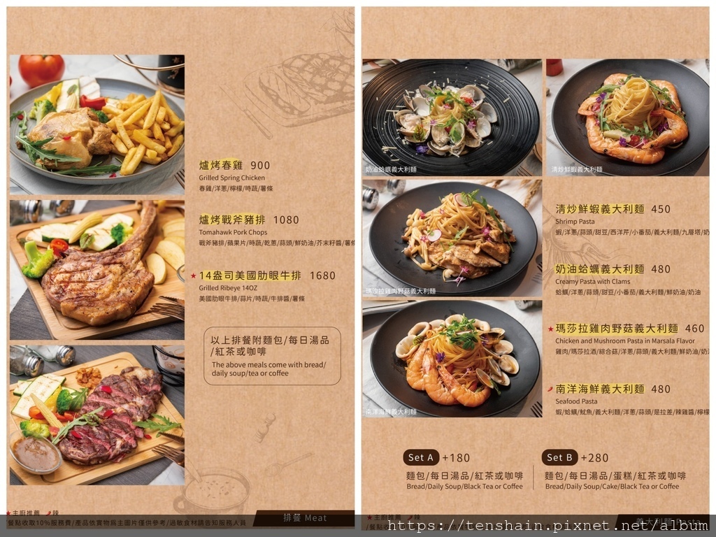 "SET B" +280 ,多了"麵包/每日湯品/蛋糕/紅茶或咖啡"