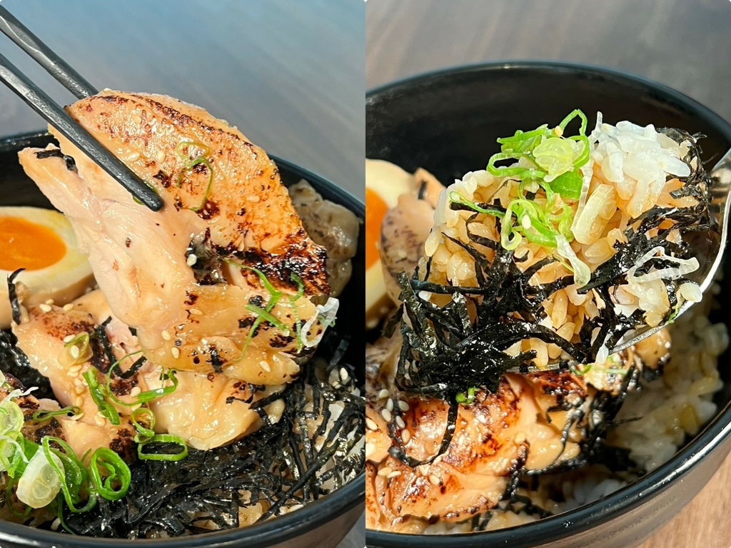 奧特還有一個很威的丼飯,就照燒雞丼!舒肥過的雞肉吃起來很軟嫩,熟度抓得剛剛好,搭配照燒醬炙燒後,是舌尖上頂級饗宴