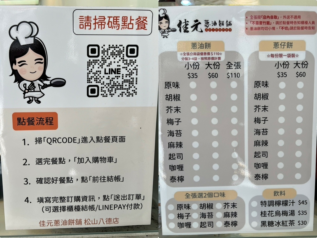 💭店家資訊 佳元蔥油餅舖 松山八德店