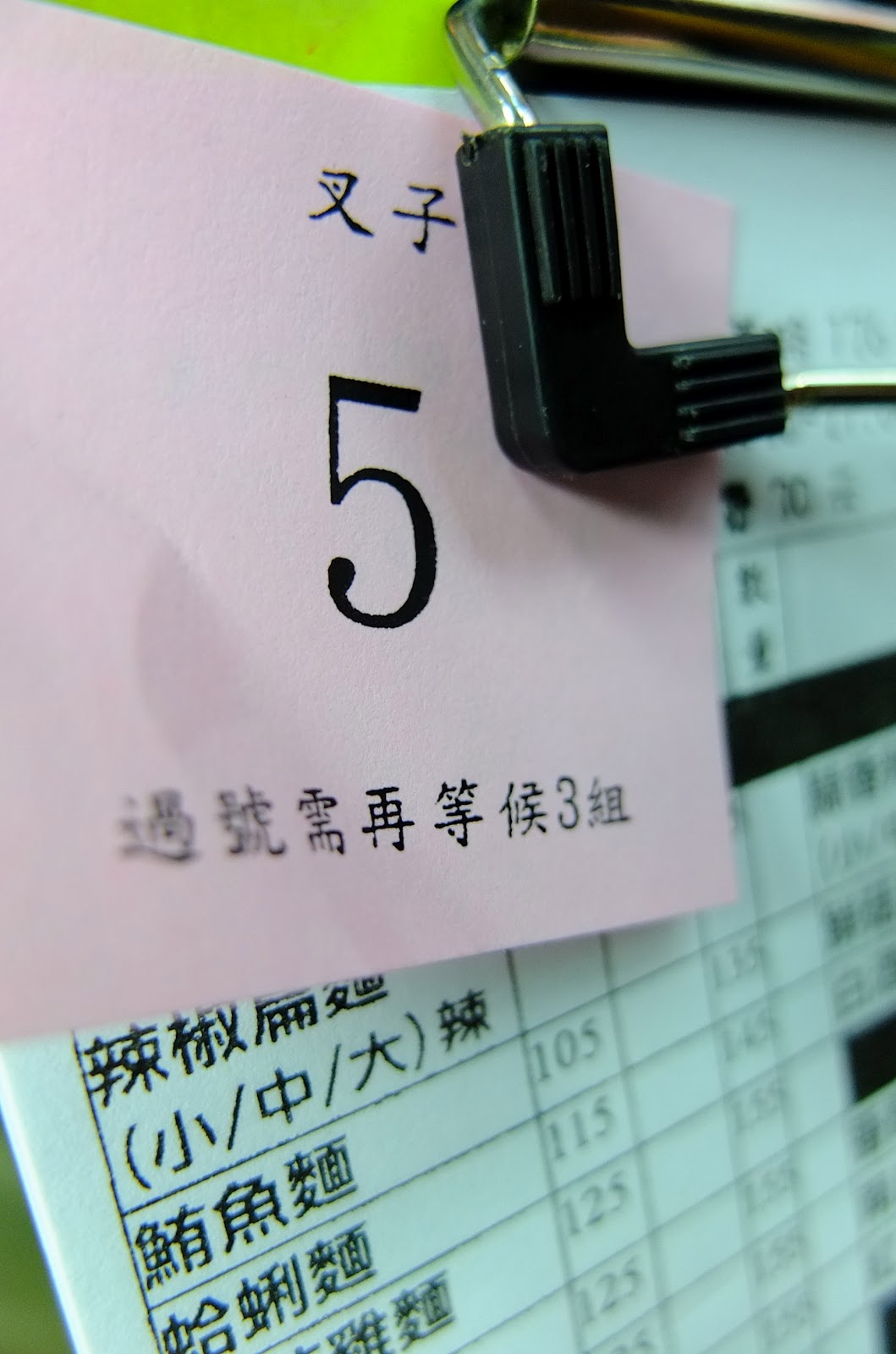 領個了5號的號碼牌... 等了10多分鐘,就告知我們樓下的桌號,出發!