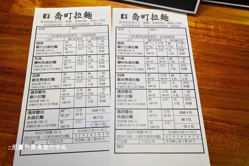 ▲接著要點餐囉,喬町的拉麵可以提供客人客製化的服務