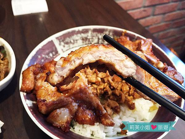 也許很多人會吃不慣,或者覺得沒有青菜還賣這麼貴,不過市場機制好像也沒因此淘汰這家店,看來可以接受的人還是多數。瞧瞧這塊美味誘人的排骨,先醃後炸,肉質相當入味,從側面看厚度直逼1.5公分,有些部位還帶有油花,吃起來更嫩。