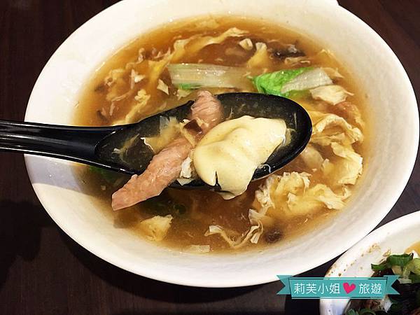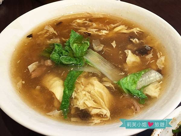 勾芡到最高境界的大滷湯,也是古早味料理很常使用的作法,就連豬肉塊也用太白粉包裹,吃起來更加鬆軟、滑溜,搭配少許蔬菜跟蛋花一起入口更讚,可惜當天湯頭偏鹹,最後我只有把配料吃光,沒有把湯喝完。