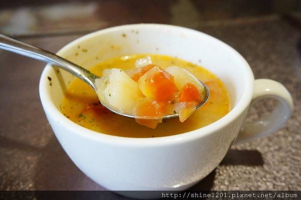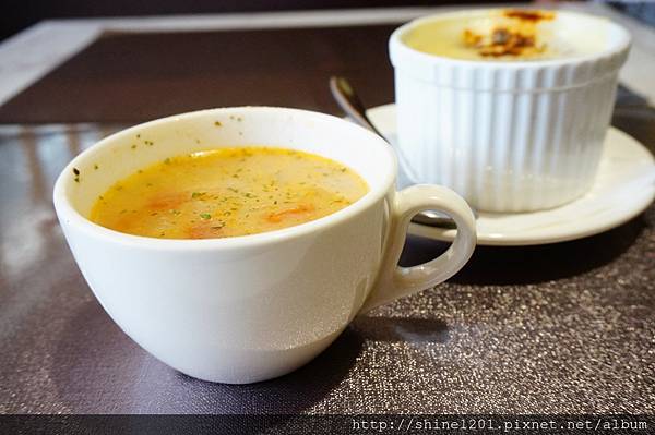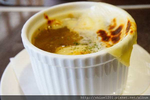 焗烤法式洋蔥湯則以起司皮、濃郁胡椒香、提味帶甜的洋蔥讓令人用餐前帶有微微飽足感、同時具開胃的喔