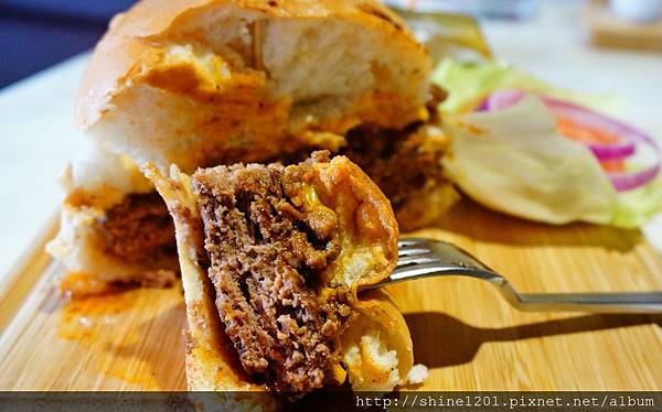 肥禿子美式餐廳的漢堡不是只有【一片厚厚的肉與生菜】,而是以層次餡料呈現