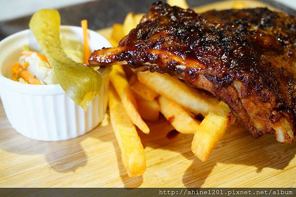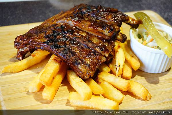 這一份碳烤豬肋排帶有點蜜汁風味的BBQ醬裡又帶有一份解膩的清爽喔