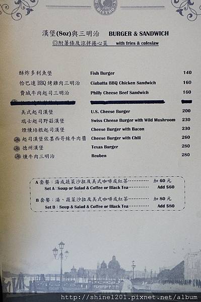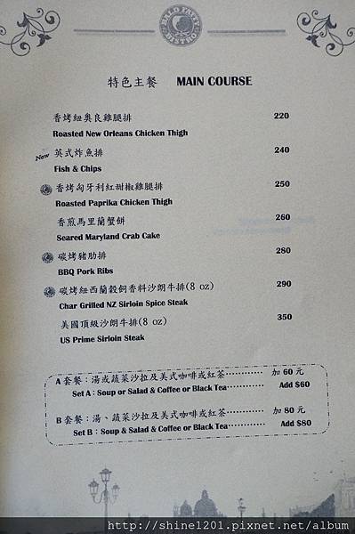 +$80升等B套餐: 湯、蔬菜沙拉、美式咖啡或紅茶