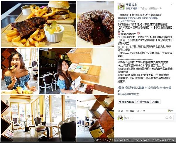 香香公主悄悄話 透過這一次的邀約認識了不一樣的美式料理 永安市場站美食-肥禿子美式餐廳相當用心經營 提供多元化的餐點及服務以外,主廚DAVID也很樂意傾聽主顧們的意見、不斷調整著美味,希望能將靜巷內的小資美味獻給更多更多的客群 FROM 香香公主/2016.7