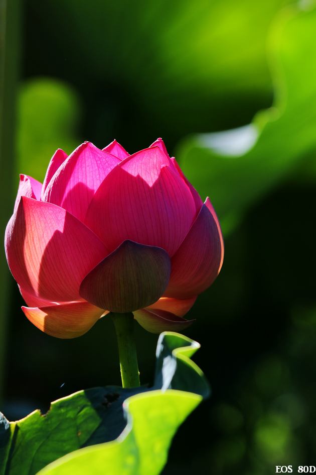 整天都可以來汐止玉泉宮荷花池,唯有在晨光乍現,微微斜射光才能讓荷花光影有立體感。