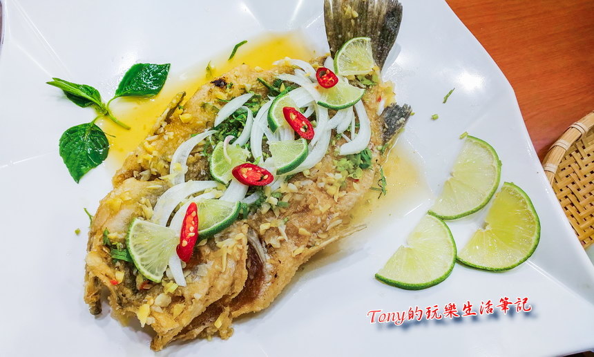 ▲南洋檸檬魚,大概是為了做成台灣人合吃的口味,味道稍淡一點,要多擠點檸檬跟加上胡椒鹽,也是不錯吃的一道菜。