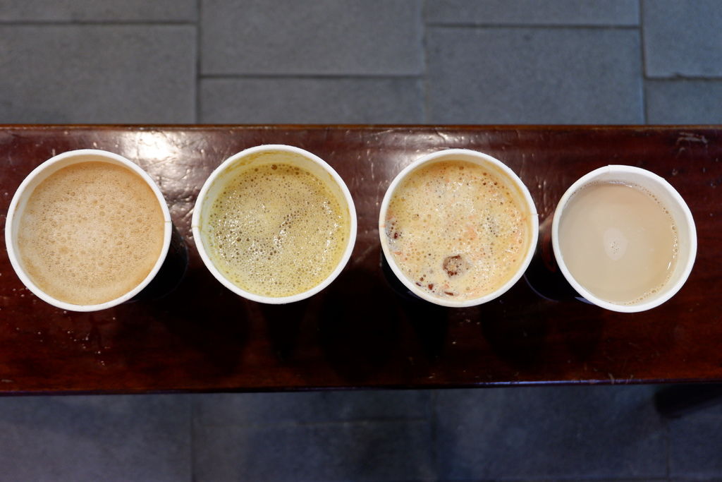 由左至右:阿源楊桃紅(無糖去冰,楊桃本身就有甜度),香柚雷孟綠(微糖少冰),紅柚翡翠(半糖少冰),紅烏鮮乳(無糖溫)
