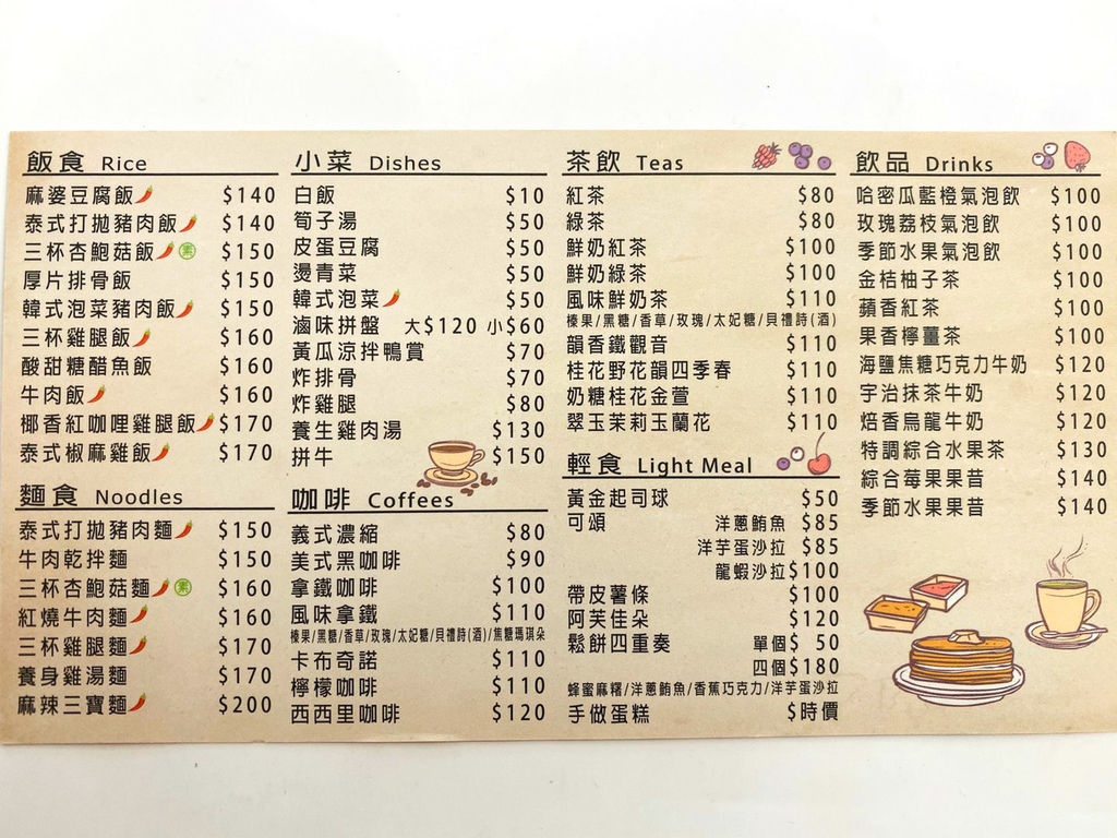 備註:有插座、正餐時段用餐限制2小時、低消100元