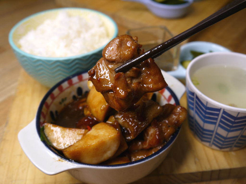 軟嫩的雞腿肉吸附了三杯的醬汁,