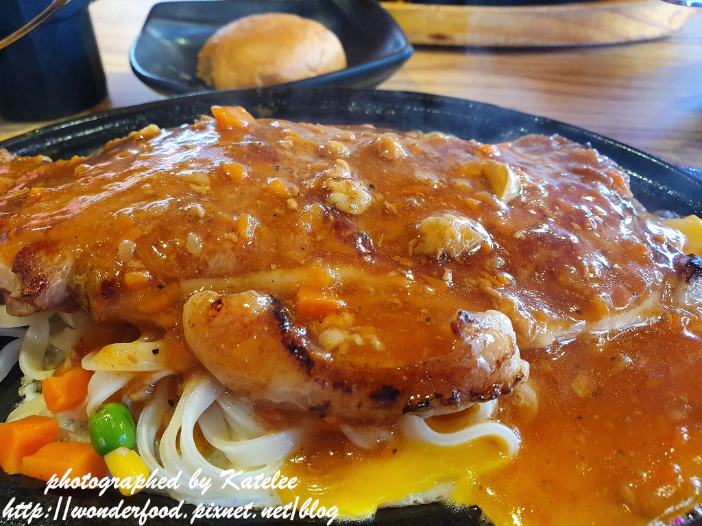 把剛送上來鐵板熱騰騰冒泡的樣子給捕捉起來了