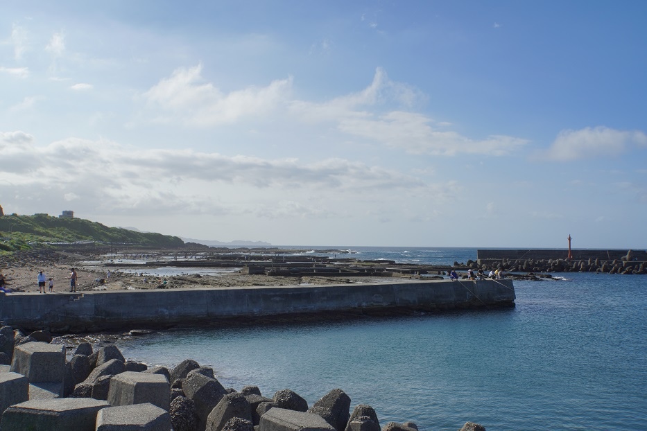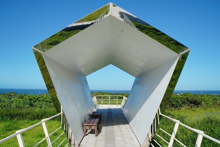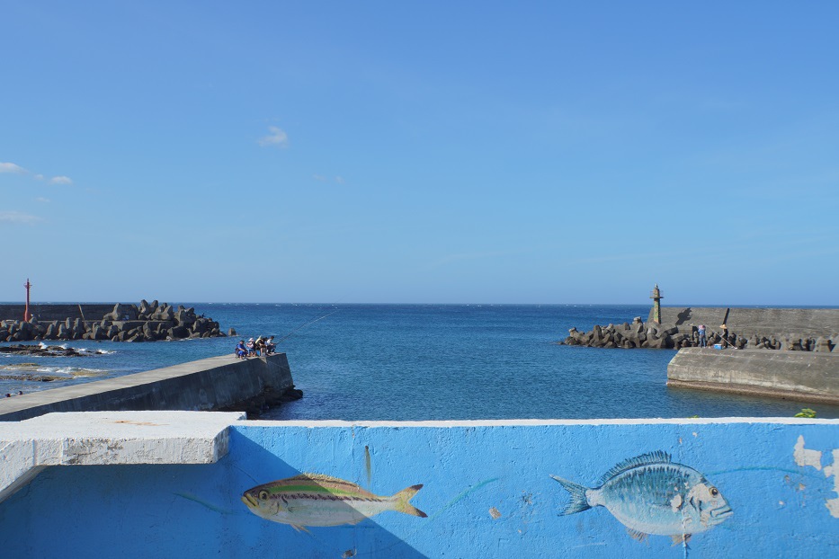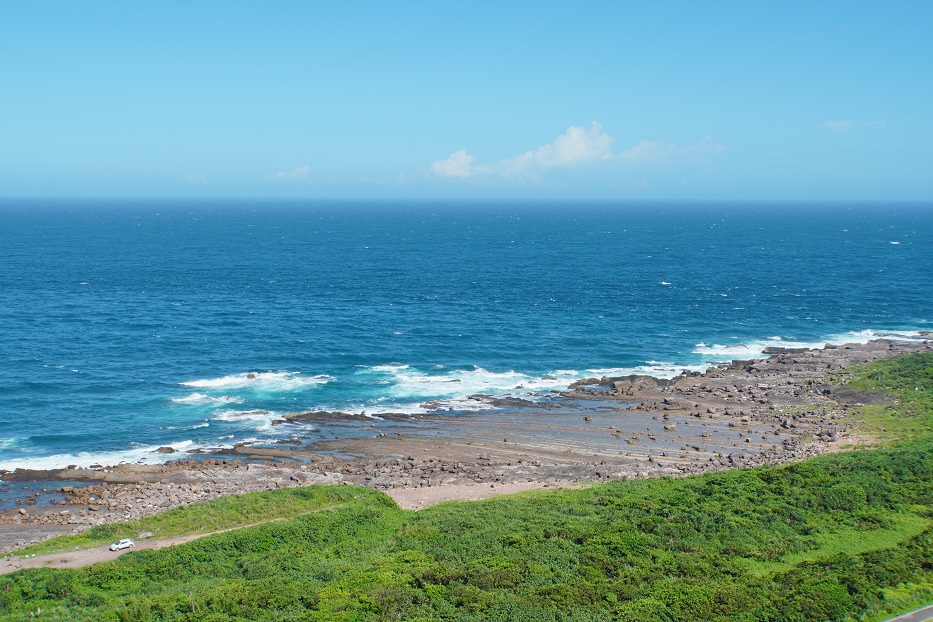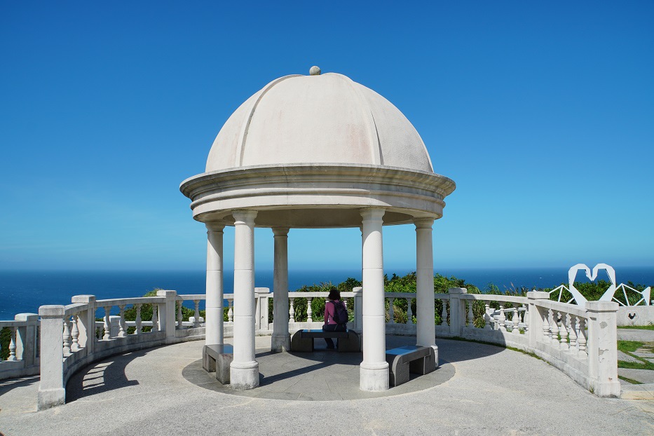 拍完一輪後,我們再一次走向極東觀景台欣賞海景,儘管已經是第二次來這邊了,不得不說,這青空藍海的景色真是怎麼看都不會膩。我們心滿意足的完整逛過三貂角燈塔,接著走下步道來到北部濱海公路。馬路的另一邊,是台灣本島最東端聚落─馬崗漁村,而在進入漁村前,路旁有座近年新闢建的極東公園,不妨順道走進來晃晃。