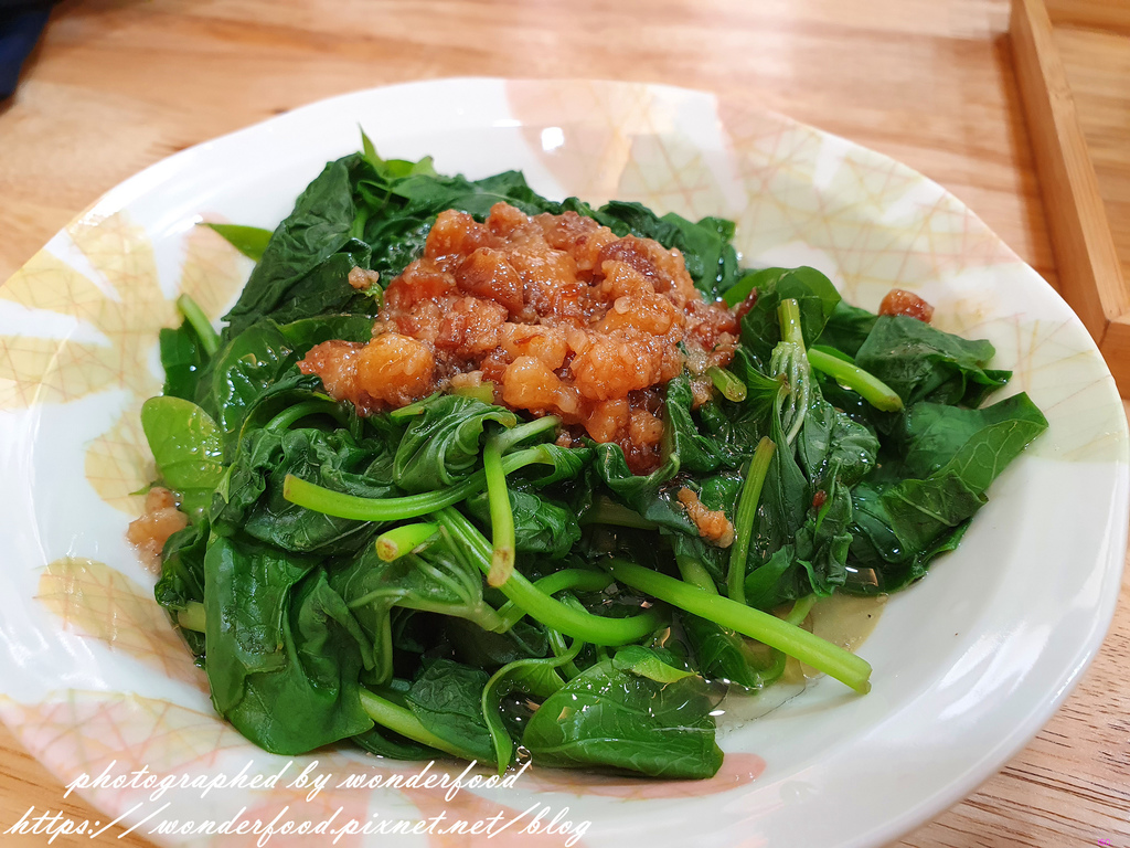 嫩綠的地瓜葉淋上肉燥