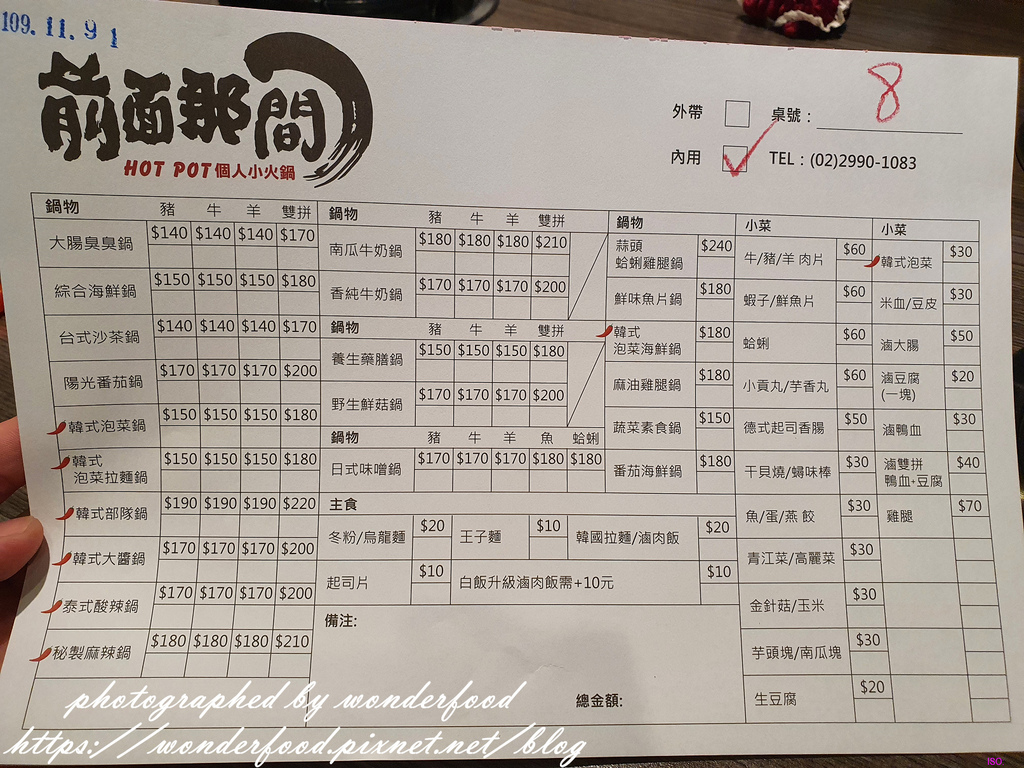 前面那間用餐資訊 用餐時間: 2020.11.26