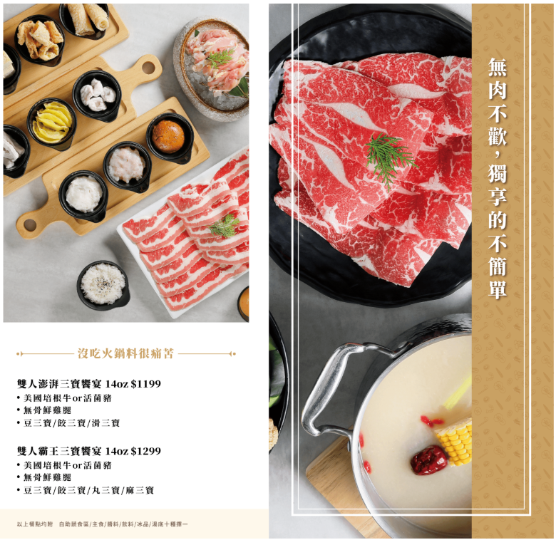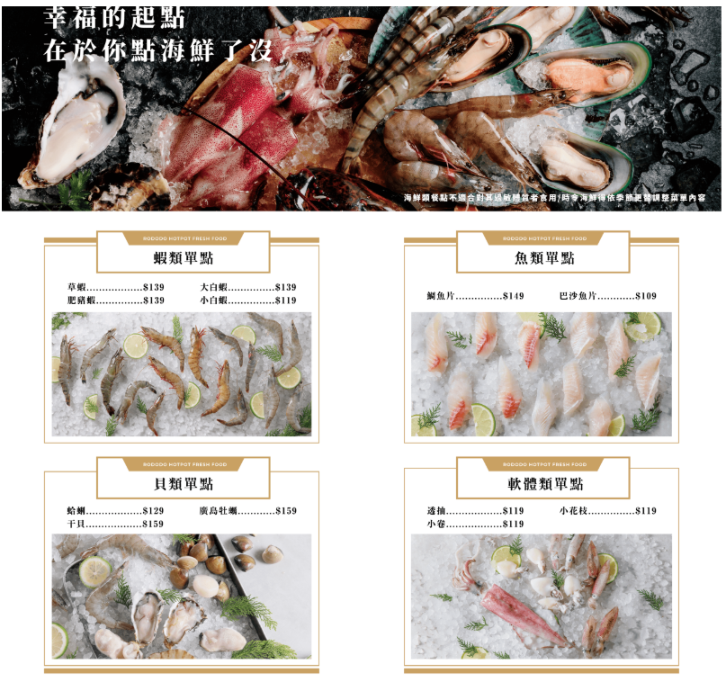 無骨鮮雞腿、美國培根牛、麻辣鴨血、白蝦和活菌豬