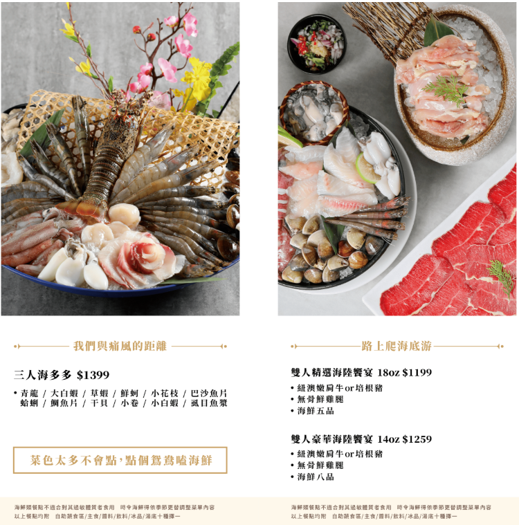 註: 用餐時間90分鐘,收10%清潔費,每人低消達268元可享用自助蔬食區