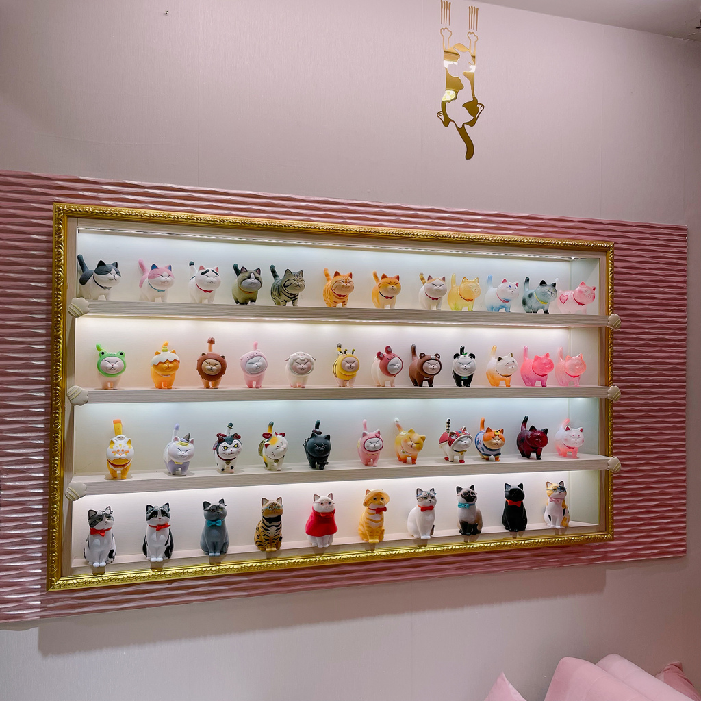 店家有特別設計一面牆都是是貓咪公仔整個看過去超級療癒的啊,身為貓奴真的會不受控~~