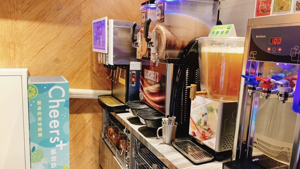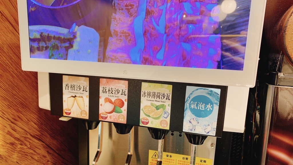 也有冰沙及綠茶,我覺得比較酷的是他的飲料機居然裝的不是一般飲料,也對啦~都有提供整個冰箱的碳酸飲料了,他的飲料機提供的是沙瓦系列!!!