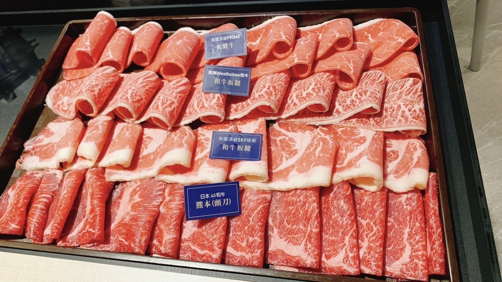 有A5和牛熊本6oz、SRF極黑和牛板腱6oz、M6-M7和牛板腱6oz、PRIME板腱牛6oz,看看那油花佈滿的紋路,現在在寫這篇食記的我,又餓了~~!!