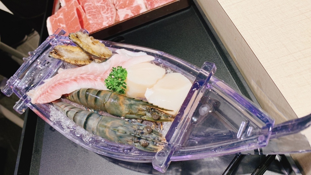 ⠀⠀海鮮的部分則有大草蝦x2、大干貝x2、鯛魚片100g、小鮑魚x2