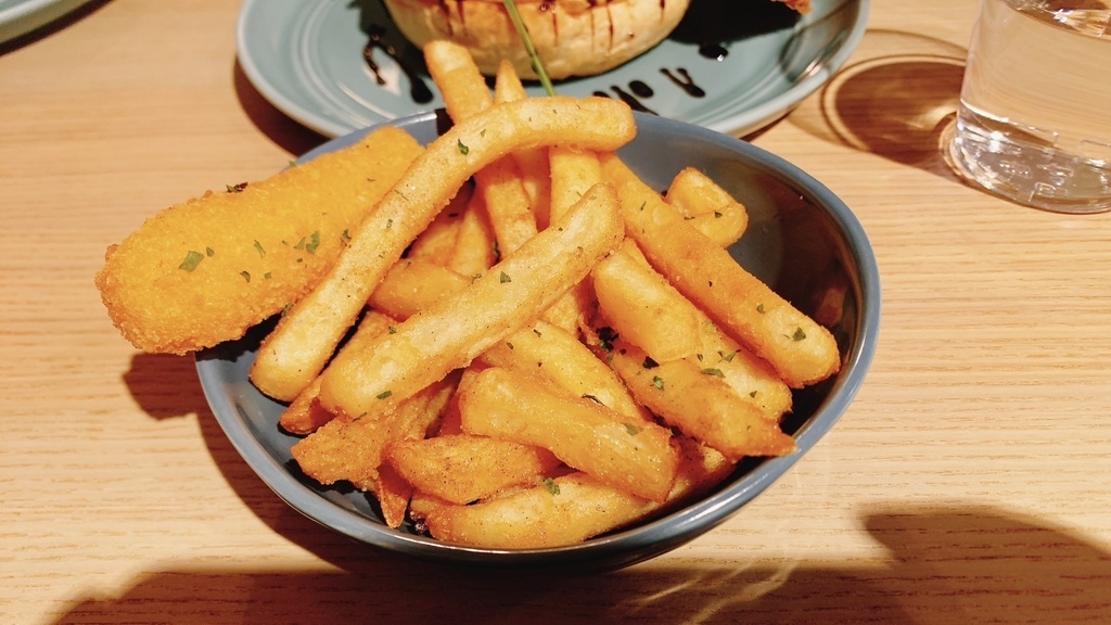 咩咩則點了起司條,上來時食物有點微溫,所以起司條沒有牽絲 有點失望~ (這是他分享給我的XD 因為他吃太快了~來不及拍照)