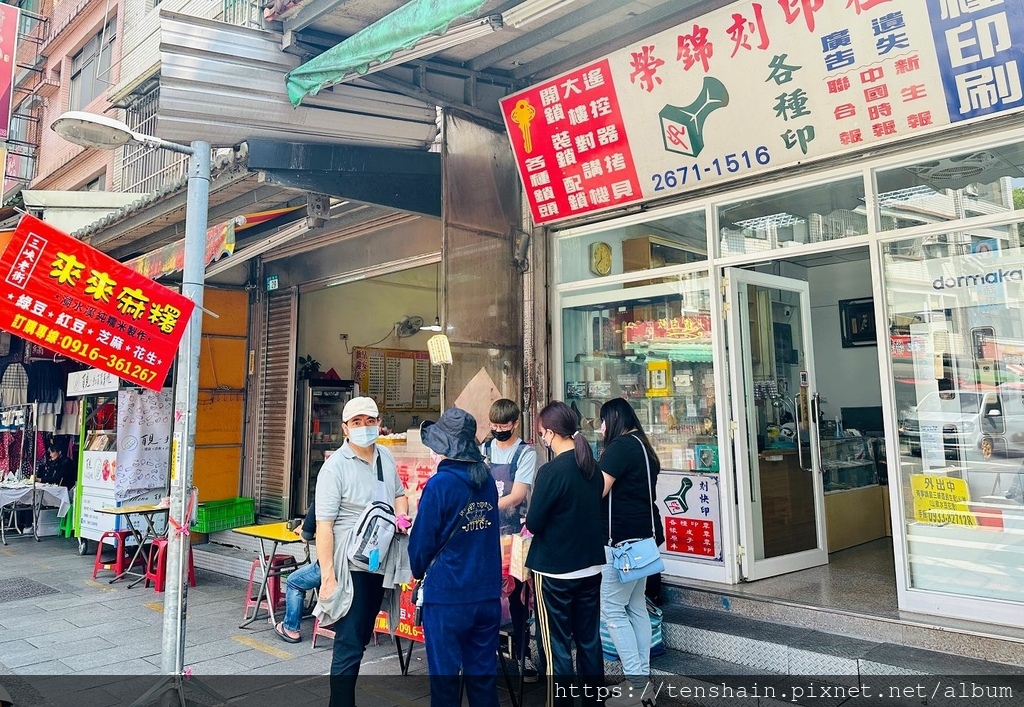 逛完老街,才走出來就看到「榮錦刻印社」前的小攤子圍著一群人,根據經驗法則,這攤賣的一定是很厲害的在地美食,怎能錯過?