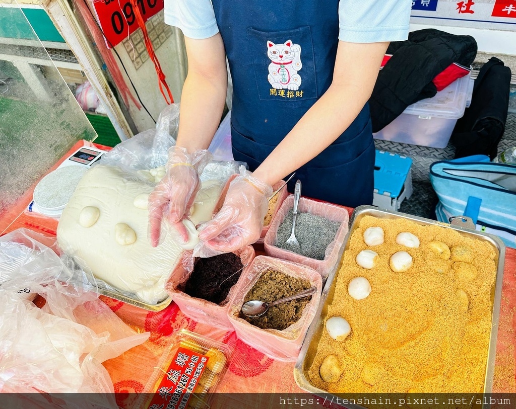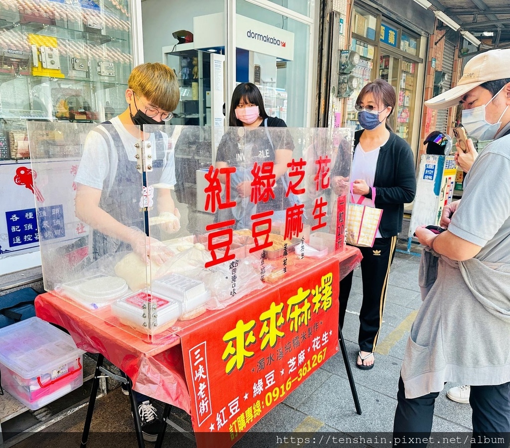 在言談間得知,原來「來來麻糬」在三峽和鶯歌都有攤位,三峽的攤位平日 ( 週二~五 ) 上午 8:30~下午 3:30 ,在民權街31號前擺攤;假日 ( 週六、日或國定連假 ) 早上 11:00~下午 6:00 ,則改在民權街 103 號前。鶯歌的攤位,只有平日( 週二~五 ) 上午 8:30~下午 2:00 ,在鶯歌區中正一路58號(鶯歌郵局對面)販售。