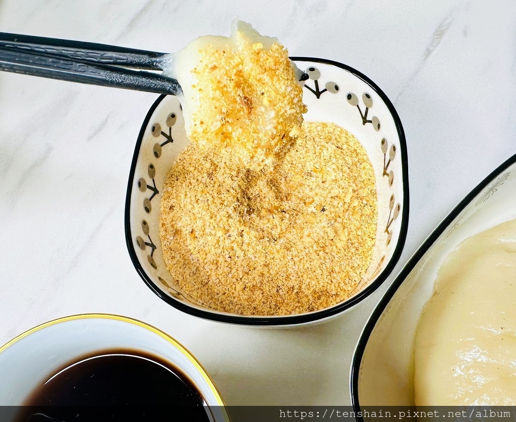 用筷子夾一塊麻糬,滾滿花生粉後放入口中,慢慢咀嚼,讓麻糬本身的米香和花生的香氣,一點一點釋放出來。體會傳統麻糬帶來的滿嘴馨香滋味,再配一杯好茶,在家就能享受最迷人的下午茶時光。