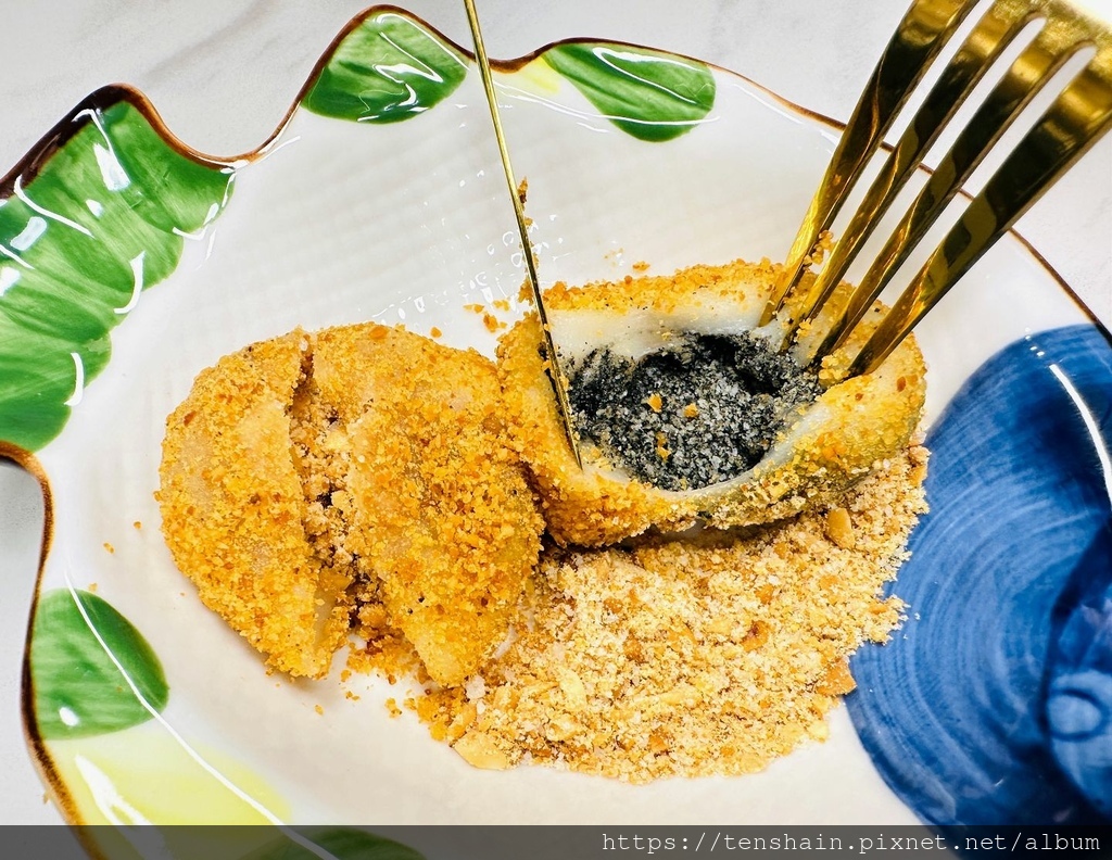 黑芝麻也是麻糬的經典口味,如果說花生是脆香,那芝麻就是油香,兩者的共同特色就是愈嚼愈香,我都非常喜歡!黑芝麻的鈣含量很高,是很好的補鈣食物,好吃又營養,滿足口慾又健康;而且「來來麻糬」的芝麻麻糬,外面也是裹上滿滿的花生粉,等於一次吃到花生、芝麻兩種口味,香上加香,雙倍滿足!
