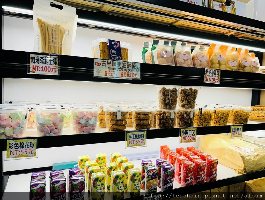 琳瑯滿目的商品,每一樣我都想買,尤其是古早味的甜點,例如現在很紅的奶油小西點,又稱台式馬卡龍,還有可愛的造型飛機餅乾。