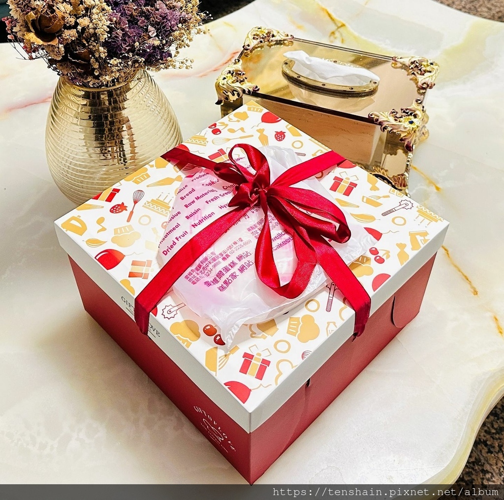 終於回到家了!不知道經過幾十分鐘的路程顛簸,盒子裡的蛋糕是否仍然安好?