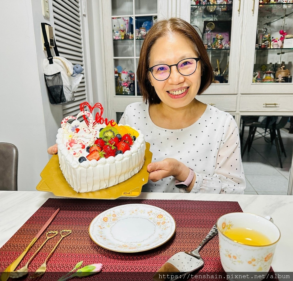 我趕緊擺好杯盤刀叉,喬好蛋糕角度,請親愛的老婆上座啦~